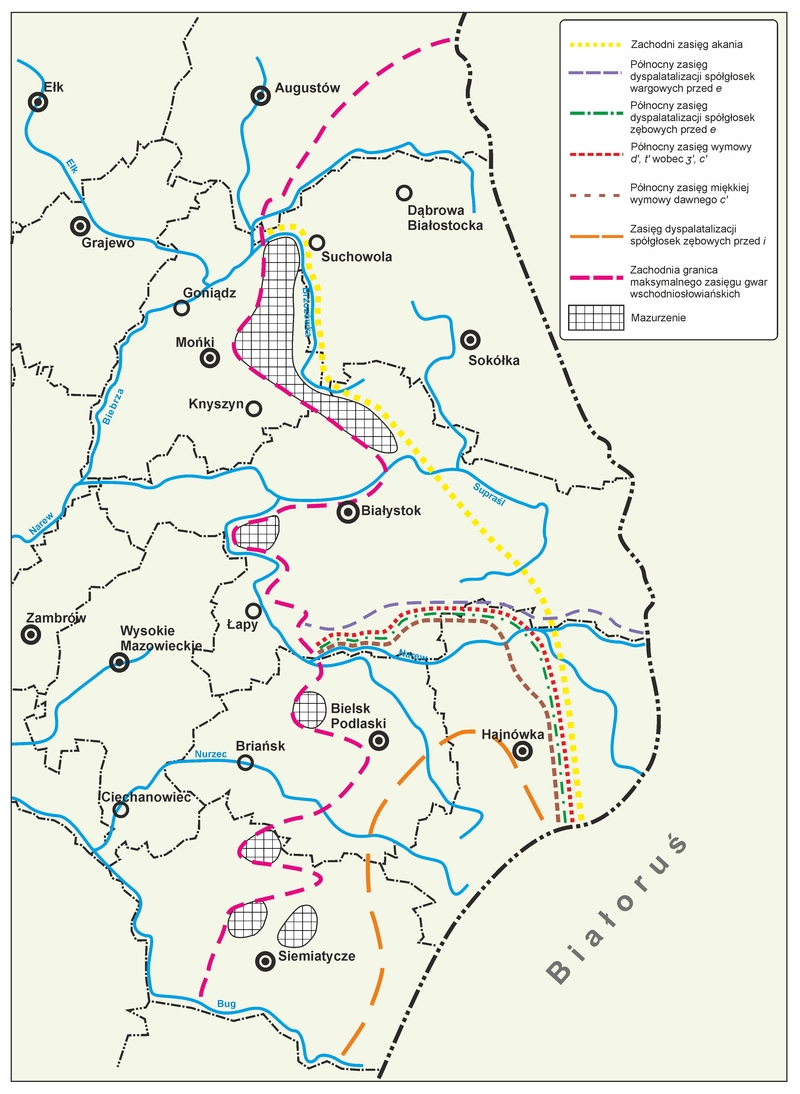 Isoglosses used to determine the Belarusian-Ukrainian language boundary (map ed.: Jacek Cieślewicz, based on: