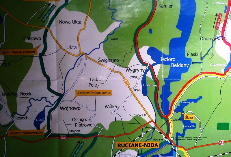 mapa turystyczna okolic Wojnowa k/Rucianego-Nidy; ze zbiorów A. Jorroch