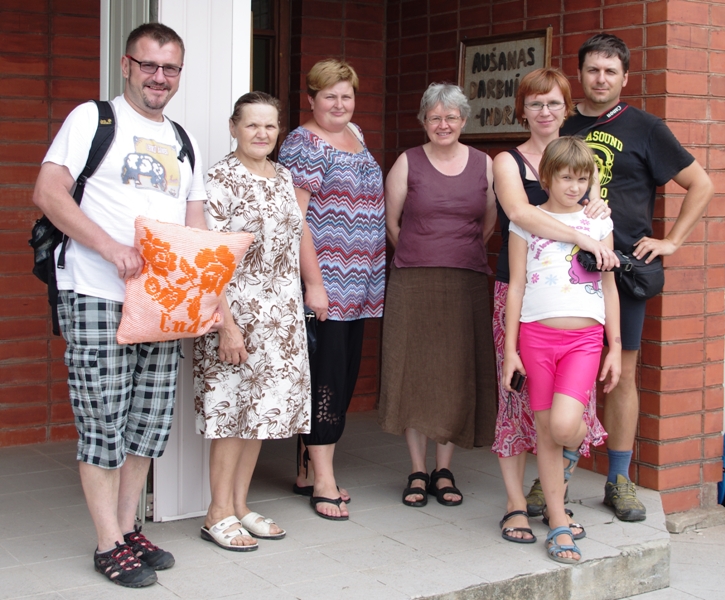 od lewej: T. Wicherkiewicz, ludowa tkaczka z Indry, kierująca Muzeum Regionalnym w Indrze, Nicole Nau, Katarzyna, Zuzanna i Wojciech Klessa.