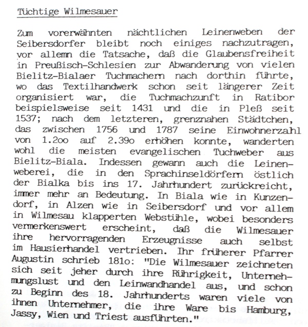 fragment o mieszkańcach Wilmesau/Wilamowic z publiakcji "Heimat Alzen"